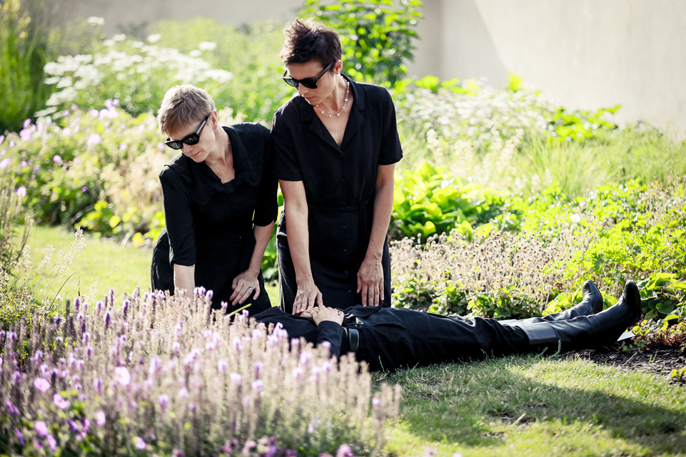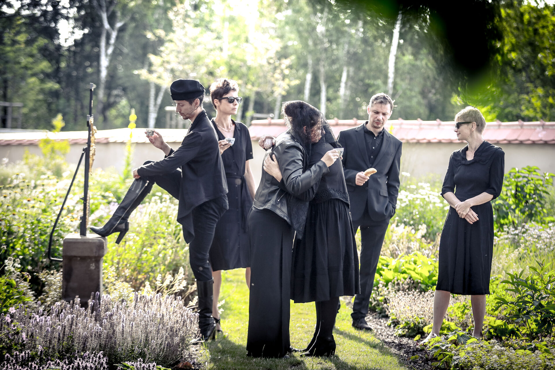 Tragikomičnost podtrhuje zvukař, který sedí na jevišti v předním rohu a místo práce pojídá rohlíky s paštikou. I to je připomínka, že oplakávání je práce jako každá jiná. Hlad je hlad a emoce musí stranou.