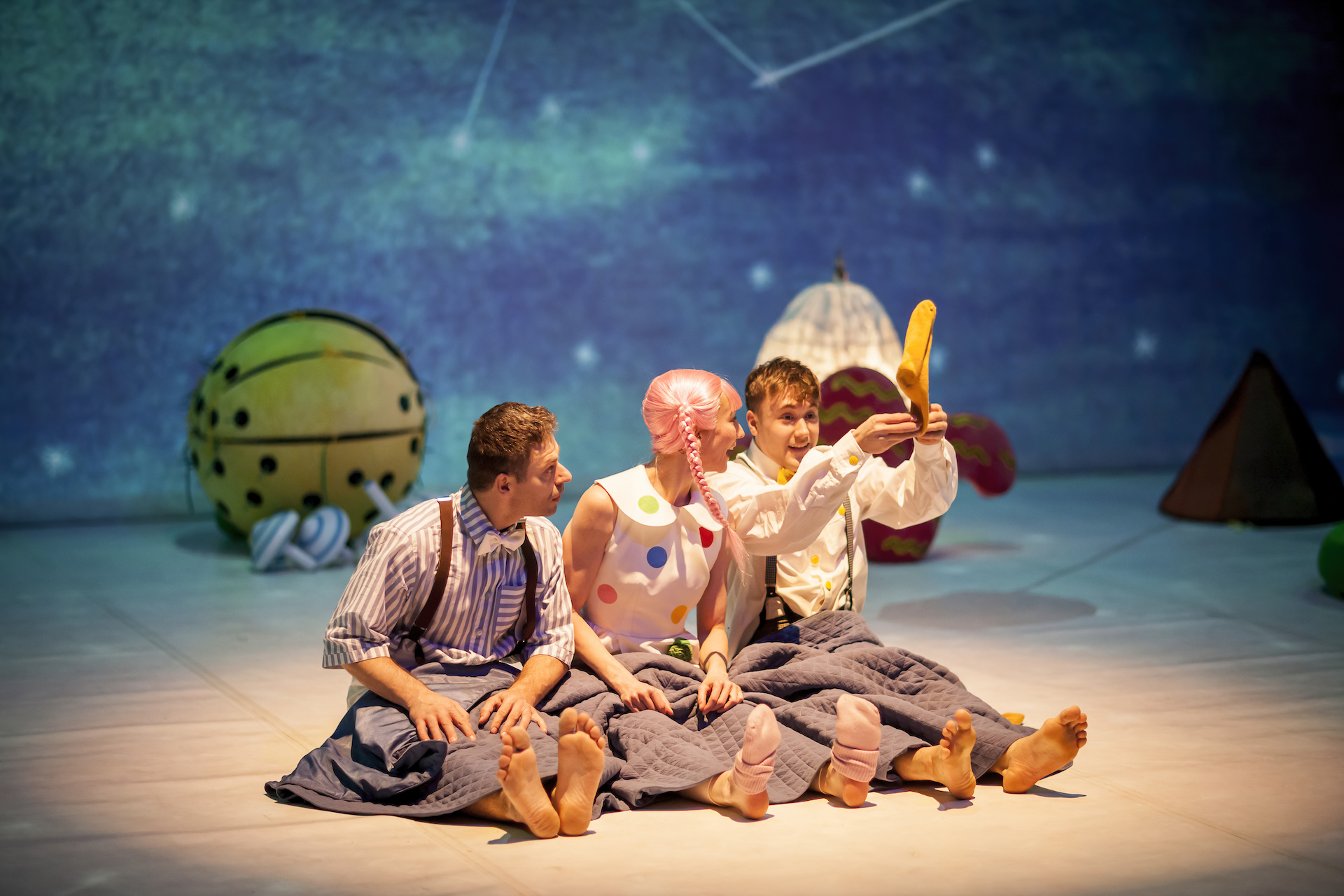 Tři účinkující, Pavlína Červíčková, David Stránský a Matěj Petrák, v rolích Panenky, Rošťáka a Poplety nevytvářejí složitý příběh, ale hravě a velice jemně provádějí děti poznáním okolního světa a jeho pozoruhodností. Využívají velké množství nejrůznějších barevných, nápaditě řešených rekvizit a kulis, ale také úplně obyčejných, každodenních věcí. Jedna z nejzábavnějších etud si vystačí s třemi páry barevných ponožek a důvtipem a šikovností interpretů, kteří tančí, různě se pošťuchují a předvádějí akrobatické kousky. Přesto nepůsobí jako klauni nebo komické figurky, ale jako vřelí a veselí průvodci rozmanitostmi světa. Dochází k různým interakcím s dětmi, vstupujícími do děje, ale i s těmi, co se jako začarované nepohnou z místa. Děti se zajímají o roztočené káči, plyšové kačenky i parníky. Výkony účinkujících jsou obdivuhodné, nenechají se rozhodit batolícími a lezoucími dětmi, občasným povykem ani třeba odnesením kulis. Díky tomu nemůže být představení dvakrát stejné. Nastalé situace trojice tanečníků zvládá trpělivě, ohleduplně a s nadhledem, aniž by vystoupili z rolí.