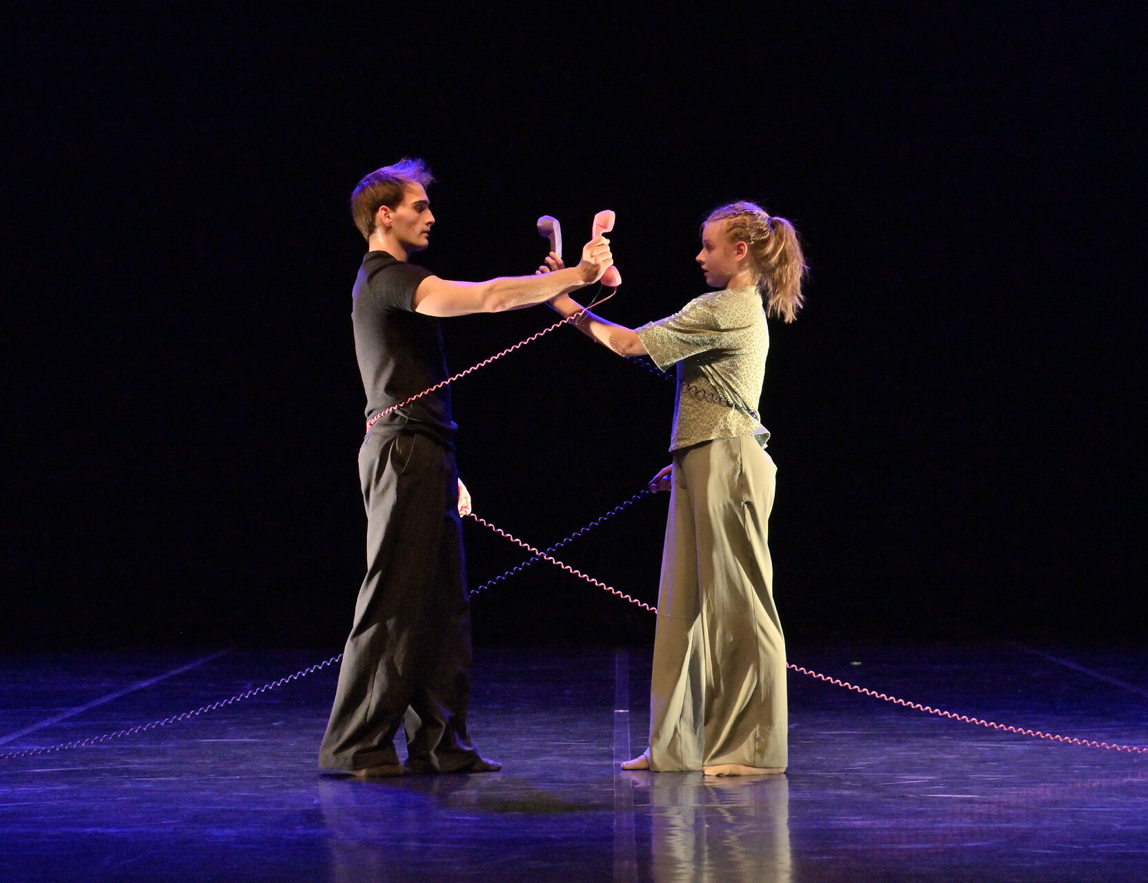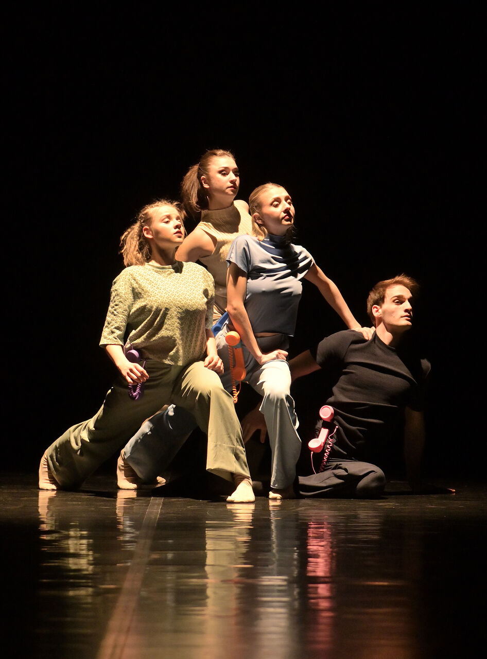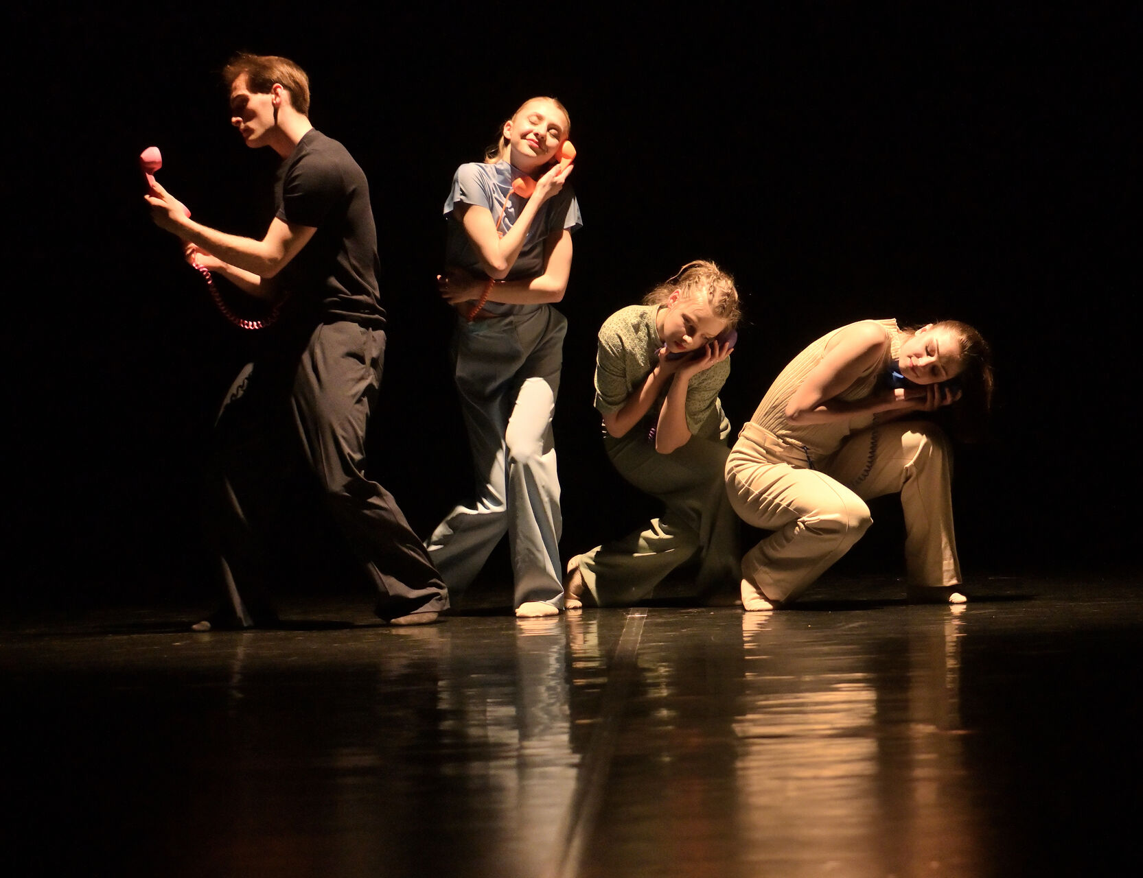 Luisa Brychcínová, Anna Tkadlčíková a Kristýna Muchková (jako host) společně s Matějem Šimůnkem tanečně rozehrávají situace odkazující na každodenní mezilidskou komunikaci, přičemž pozornost se neustále navrací k telefonním sluchátkům. Ta zde nepochybně nabývají hned několika významů: od reflexe závislosti na mobilních telefonech a moderních technologiích přes symbol osamění a neustálé potřeby být ve spojení s okolním světem až po metaforu smyslu života. Sledujeme přitom celé spektrum lidských vztahů. Harmonické a láskyplné, přátelské, ale i konfliktní, povrchní či rozpadající se.