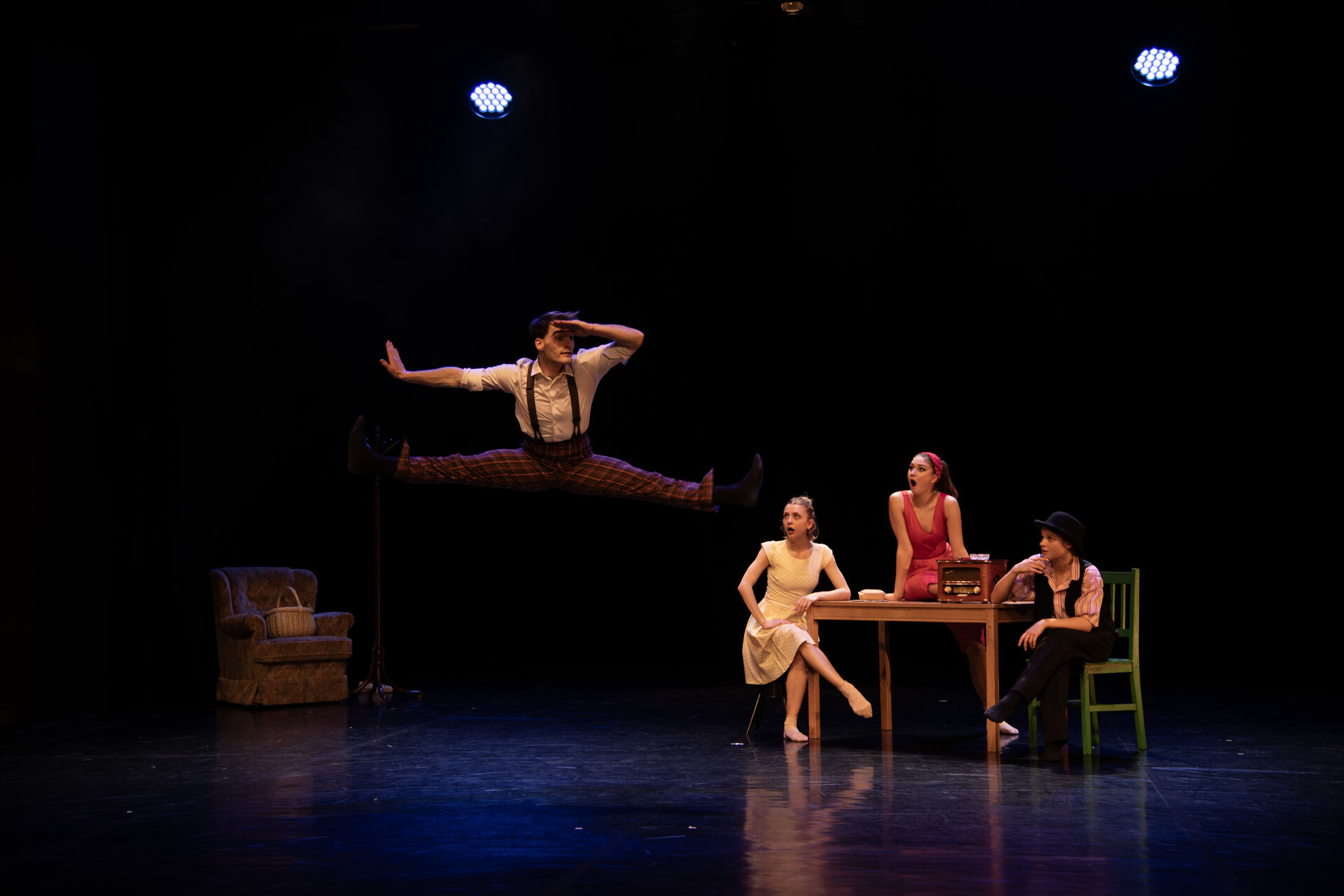 Scénu tentokrát tvoří různé kusy nábytku a drobné rekvizity, které dohromady evokují prostředí velkého pokoje či malého bytu. Eliška Koldová, Anna Tkadlčíková, Luisa Brychcínová a Matěj Šimůnek v něm obratně pohybově oživují texty známých českých skladeb linoucích se z rádia původně umístěného na jídelním stole. Choreografie využívá herecké schopnosti interpretů a kombinuje prvky swingu, charlestonu i kabaretní či estrádní stylizace. V propojení s hudbou, scénografií a kostýmy tak diváka přenáší do atmosféry minulého století.