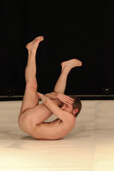 Performace v koncepci Jara Viňarského je zaměřená na vizuální dojem a na práci s energií. Dvě mužská těla, která sledujeme dlouhou dobu na jevišti, zbavená všeho zatěžujícího oděvu, se pohybují pomalu po scéně, téměř se přelévají po jednotlivých centimetrech z místa na místo, v neustálém napětí, v neustálé kontrakci, takže ačkoli ani jeden z tanečníků se nejméně půl hodiny nezvedne ze země, je jejich námaha téměř hmatatelná. Přesuny a převaly se dějí v tak změněném tempu, že je divák vtažen do tohoto pomalého toku, aniž by si uvědomoval explicitní nahotu performerů, těla působí vpravdě odlidštěně, ale kým jsou? Šelmami nebo nějakou primitivní formou? Máme si snad představit, že něco takového číhá hluboko v nás? Součástí inscenace je i cílená práce s tmou, tmou, ve které promlouvá hlas a která má zostřit a oddělit naše smysly, aby se vzájemně neovlivňovaly.