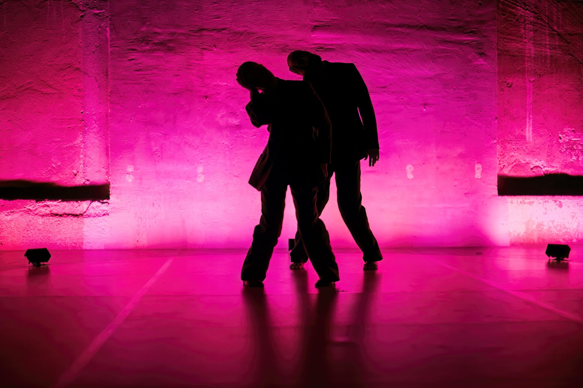 Když Paulína Šmatláková dokončí inspirativní projev, přichází na scénu její taneční partner Michal Heriban, aby ji osvobodil z headsetu. Je rovněž oděný v kalhotovém kostýmu, což vizuálně podporuje podnikatelský étos. Slovo přechází v pohyb, přičemž některé sekvence jsou fúzí současného tance a (pravděpodobně slovenského) folklóru – jde zejména o různé skoky a výkopy nohou. Oba performeři disponují výbornými pohybovými kvalitami, skvělou kontrolou nad tělem. Naprosto plynule a zdánlivě s lehkostí přecházejí z tenze do uvolnění, z ostrého sekaného pohybu do jemnějších a oblejších. Mají mezi sebou navíc silnou jevištní chemii, což kompenzuje o něco introvertnější Heribanův jevištní projev.