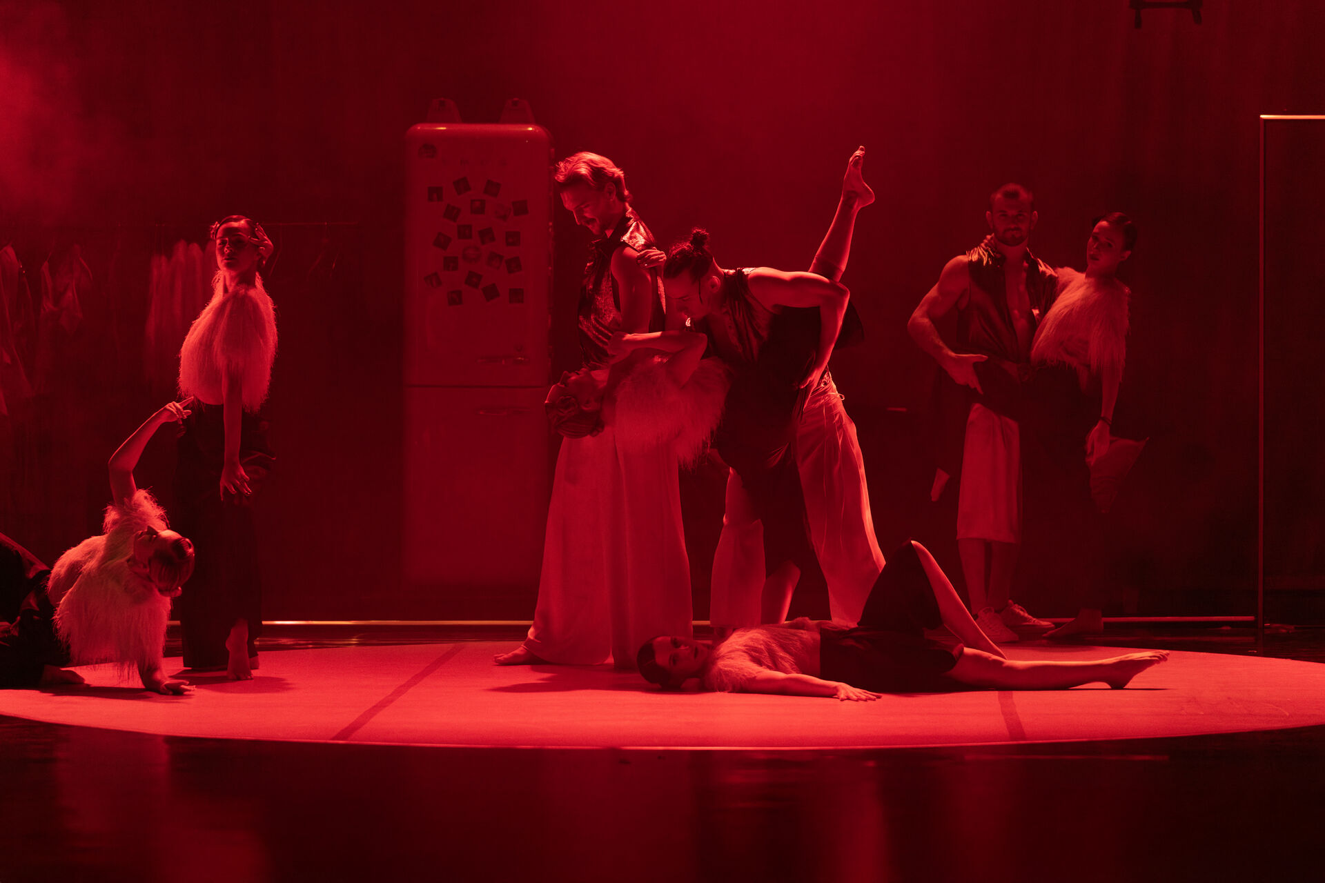 Večer je vystavěn jako sled krátkých výstupů, které se stylově i technicky liší. Vidíme vzdušnou akrobatku na hrazdě, duo s obručemi, cyr wheel, závěsné strapsy, handstandovou techniku i drobná čísla tance a pozemní akrobacie. Ne všechny výstupy jsou však pohybově stejně přesné. U části performerů chybí přesnější timing, zejména v návaznosti na hudební strukturu. Občas se rozchází energie těla a rytmus skladby, což snižuje estetický účinek jinak solidní techniky. Podobně herecká složka není u všech vyrovnaná – místy absentuje verbálně zmiňovaný sex-appeal, některé mikropříběhy fungují spíš jako spojky než jako plnohodnotné situace.