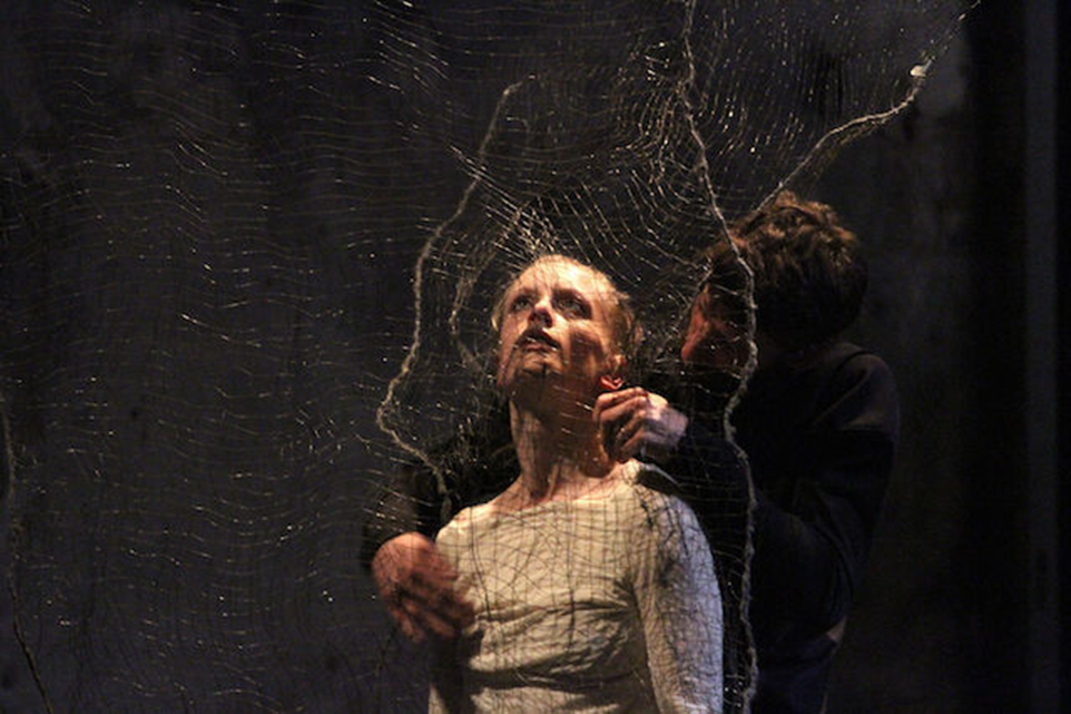V druhé části Kunešovy inscenace se rozvine zajímavá scéna s provazy. Jsou v druhém plánu scény, tanečníci je rozvlní, rozkmitají tak, aby vytvořili možná tok času, energie nebo řeky života? Oba muži proti proudu toku na sebe následně nalepí bílé chomáče, které vypadají jako vousy, nebo šlem, pěna z řítícího se toku ubývající energie.
