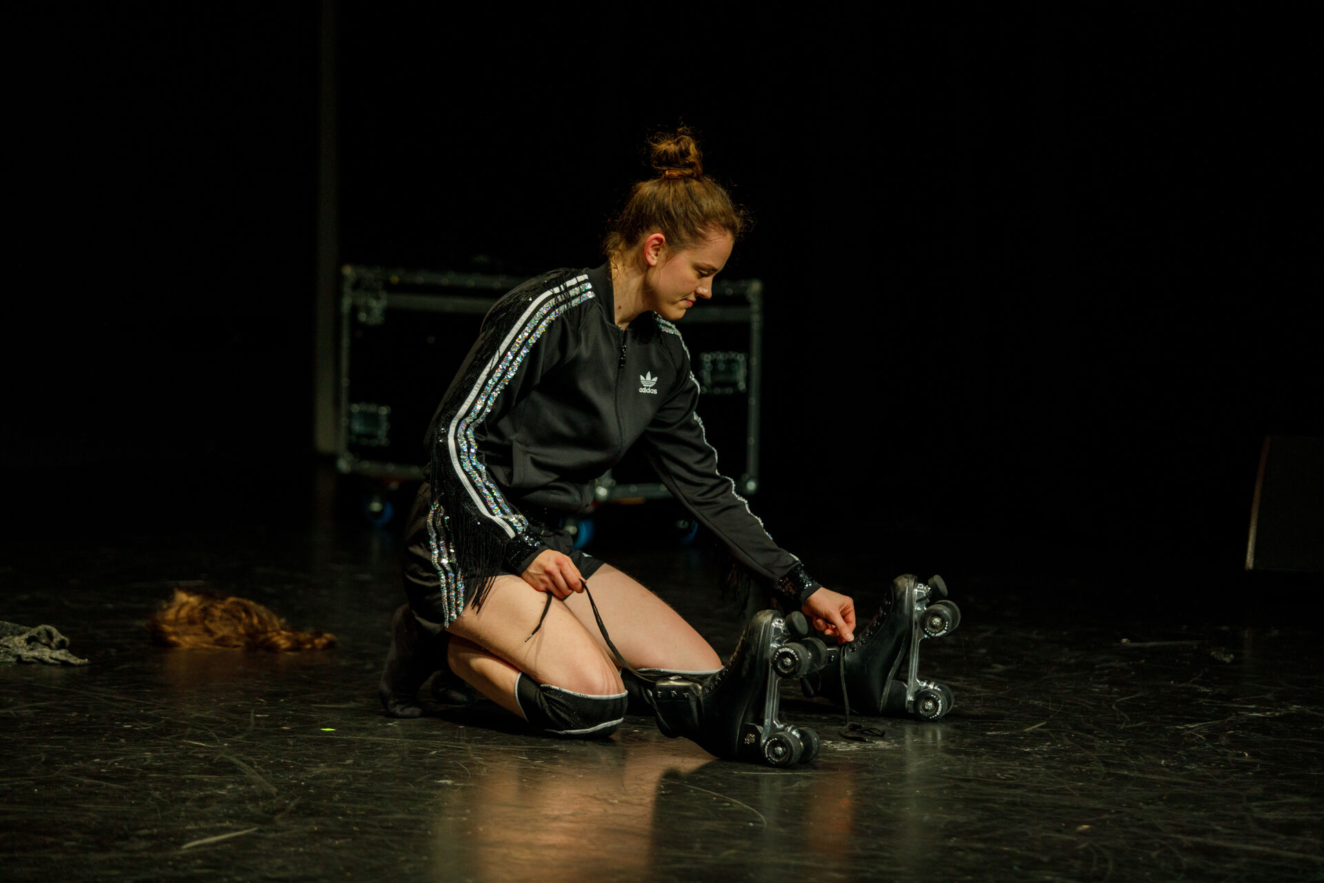 Z touhy ovládnout jízdu na bruslích se stává sžíravá potřeba kontroly nad svým tělem i životem. […] Performerka opakuje jednoduché pohyby a marně se snaží najít balanc. Ve své neobratnosti ale není prvoplánově groteskní, právě naopak.