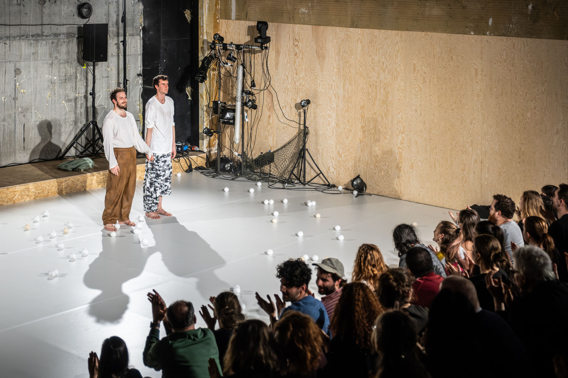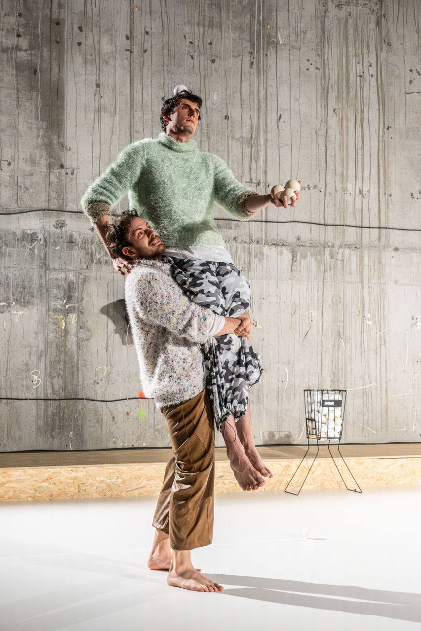 Tíha a síla jednoho kontrastovala s vahou a netečností druhého. Výtečný fyzický dialog s potenciálem široké interpretační škály vedl osobní představivost od ztroskotanců po přátele v existenciálně svízelné situaci, kdy je potřeba setřepat minulost, zachytit se v přítomnosti a neupínat se k budoucnosti, a nakonec zaujmout nějaký postoj.