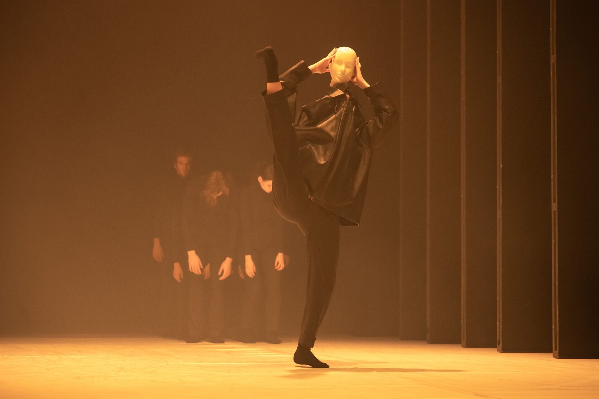 Neobvyklý choreografický slovník podtrhuje hudba Kishi Bashi a The Haxan Cloak, která v některých pasážích taneční dění přímo vede a dodává celé inscenaci pocit neskutečna až snové neuchopitelnosti. Sbor tanečníků oděných v černé se pohybuje zvláštní chůzí vpřed i vzad, vycházející z impulzů pánve, pracuje s jemnými skupinovými izolacemi a vytváří zneklidňující, ale fascinující obraz kolektivu. Nejmagičtější okamžik přichází ve chvíli, kdy na scéně zůstává samotný Pampúšik v podání talentované Dóry Szepsi, jejíž pohybová interpretace dává postavě křehkost, melancholii i hravost. Pohyb loutky je dán vlastním kostýmem, kdy je horní část těla včetně hlavy tanečnice zakryta černým sakem a v zadní části kostýmu je pevná tyč, na které je nasazena bílá hlava. Proporčně neodpovídá člověku. Její trup zůstává pevný, nohy se zkrátí a nejvýraznější částí se stávají výmluvné paže. Už samotná její přítomnost na jevišti otevírá prostor pro tiché zastavení a návrat k tomu, co jsme kdysi považovali za samozřejmé.