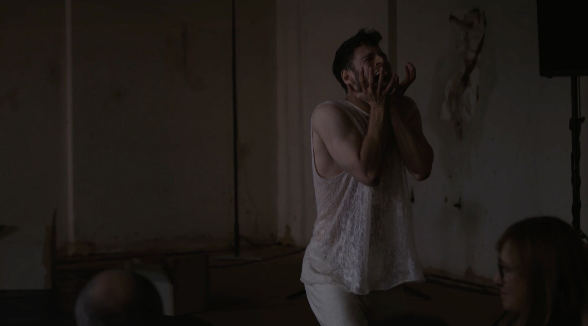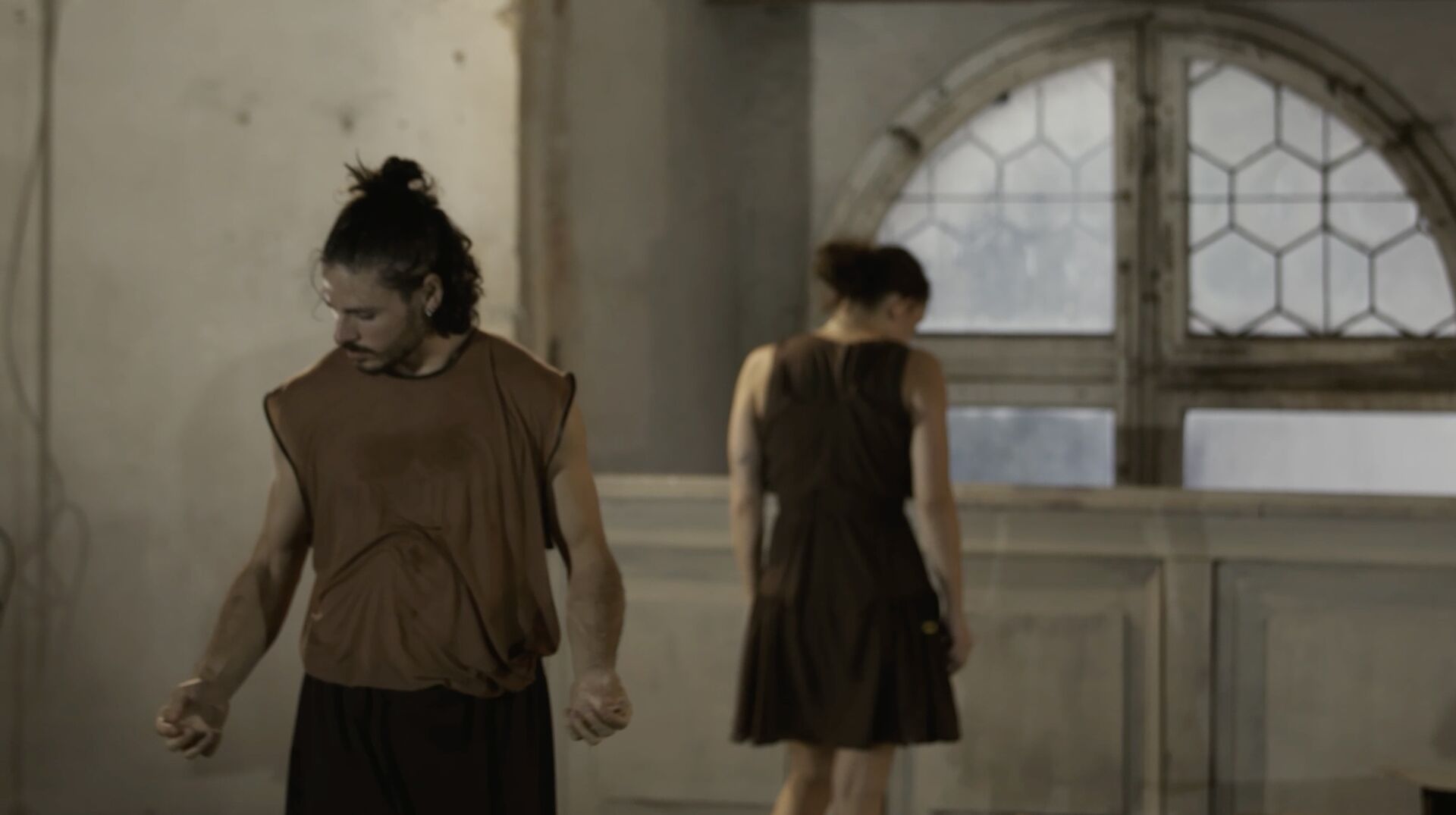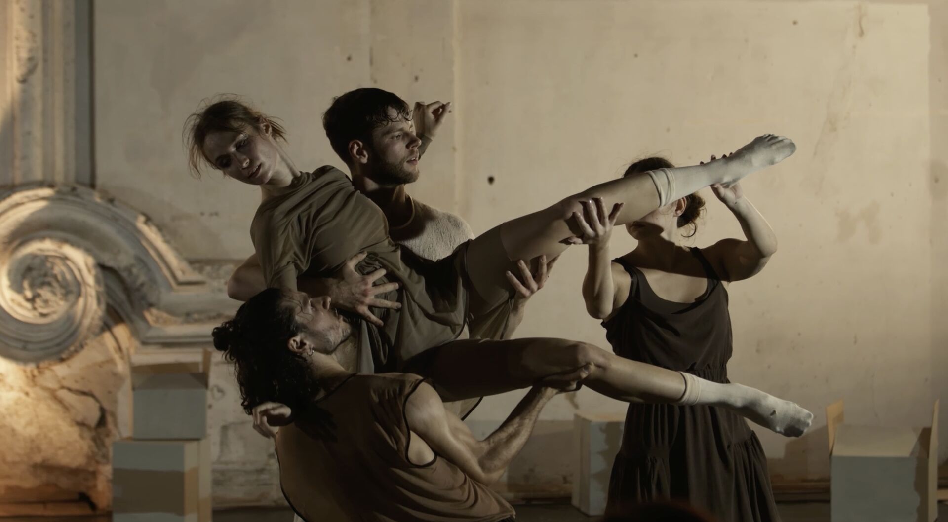 Na počátku zaujímá každý z tanečníků s průsvitnými páskami přes oči jiné místo – tři stojí v širokém rozkročení v rozích, Zappalà leží uprostřed, po stranách jsou rozhozené papírové krabice. Pohybová materie se postupně rozvíjí a proměňuje. Široce rozevřené paže objímají prostor, do něhož taneční kvarteto stále výrazněji vstupuje a jehož členové rozdýchávají svá těla, probouzí opomíjené smysly a instinkty, které ovládl rozum.