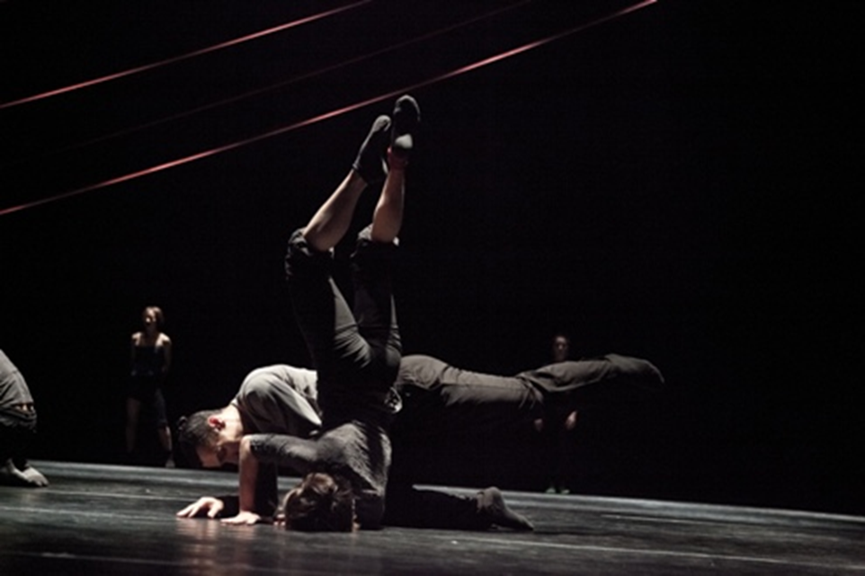 Druhá premiéra večera zalidnila jeviště podstatně více. Václav Kuneš vytvořil choreografii Reen pro šest tanečníků a jednoho hudebníka, vytvářejícího hudební doprovod přímo na scéně. Amos Ben-Tal svým beatboxem, elektrickou kytarou a systémem pro nahrávání a opětovné přehrávání zvuku určuje ráz představení. Tanečníci dynamicky reagují na tóny, které jejich hudební protějšek vyluzuje, aby se poté postupně setkávali v duetech či sólových akcích. Každý z nich má také k dispozici mikrofon, zavěšený na červené šňůře natažené šikmo nad jevištěm. Hudebník je pak i mistrem zvuku ve chvíli, kdy tanečníci promluví a jejich ihned nahrané věty opakovaně zní prostorem. Použití nahrávacího systému je vděčné a je jedním ze zásadních pilířů této choreografie, kterou samozřejmě podporují i všichni performeři. Všech šest tanečníků ovládá těla s velkou precizností a každý přináší svůj vklad, temperament i hlas – na jevišti se kosmopolitně prolínají tanečníci z České republiky (Zuzana Herényiová, Milan Odstrčil), Brazílie (Nina Botkay, Samir Calixto) a Japonska (Rei Watanabe, Kenta Kojiri).