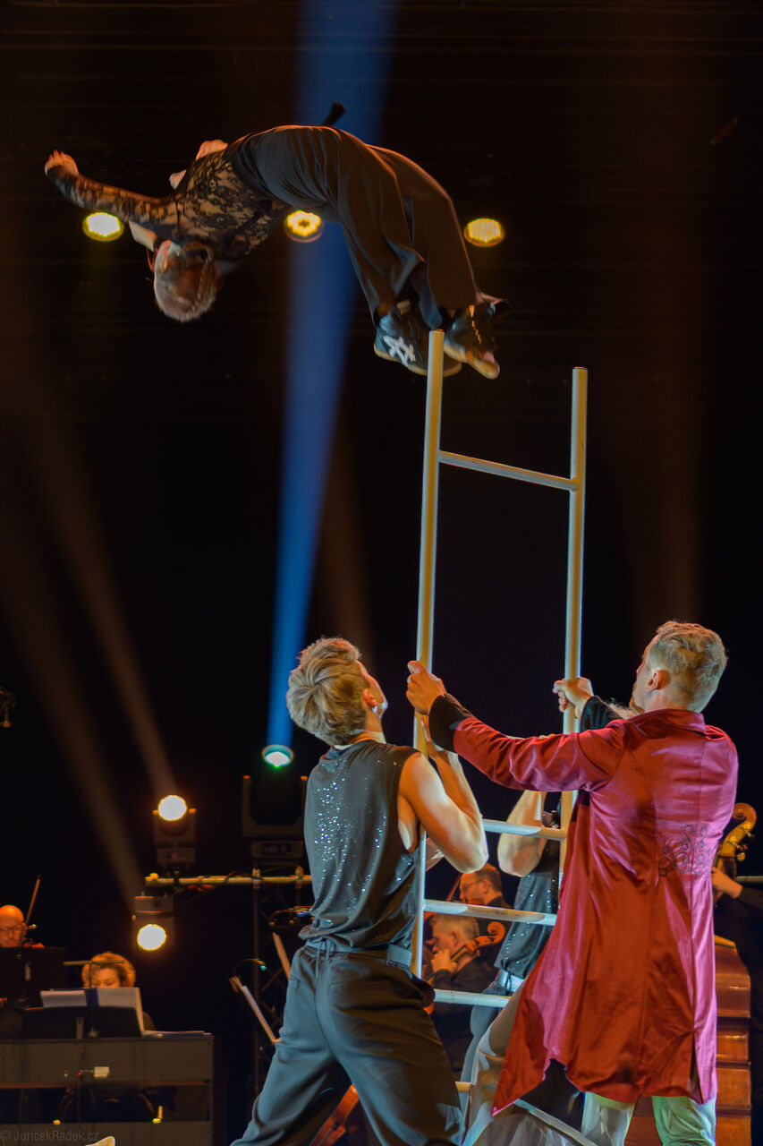 Vedle sól a duetů, v nichž se představili například Francouz Matthieu Boullié, Jay Che ze Singapuru, Agro the Clown z Itálie, německé duo flexoncirc či z domácích Michal Tříska, Michal Mudrák & Cirko Hopley a další, přispěly do inovované desáté edice festivalu dva velmi výpravné projekty. Prvním z nich se stala Vzdušná symfonie, v jejímž rámci se klasická hudba setkala s artistním uměním čili Janáčkova filharmonie Ostrava se potkala s místním BoCirkem. Druhým bylo opětovné hostování francouzsko-italského cirkusu Circo Zoé, který přivezl výpravný titul Naufragata. V případě Vzdušné symfonie se více než o inscenaci jednalo o koncertně-performativní formát, jenž velmi působivě propojoval nový cirkus, fyzické divadlo, pantomimu, tanec a živý orchestr na jednom pódiu. V tuzemském prostředí i celosvětovém kontextu se tyto spolupráce dějí nezřídka jako výjimečné gala, občas jako scénický déletrvající počin, který atraktivně osvěžuje repertoár. Spojení orchestrální hudby s tělesně ohromujícími výkony se již například vyskytlo u Cirku La Putyka, z mezinárodní scény pak zejména u kanadských souborů, ale nejen u nich. V Ostravě tímto vznikla příležitost zaposlouchat se do hudebního cyklu Čtvero ročních dob Antonia Vivaldiho a sledovat výtvarným uměním inspirované obrazy, prodchnuté tělesnou virtuozitou. Show sestavená z fyzických triků a vizuálních efektů podpořených historicky stylizovanými kostýmy sice strádala v dramaturgii a režijním uchopení z hlediska provázanosti výstupů a kvůli široce rozkročené volbě výrazových prostředků, ale vyhrávala vitalitou a uměním vtáhnout diváka do adrenalinově spektakulární akce.
