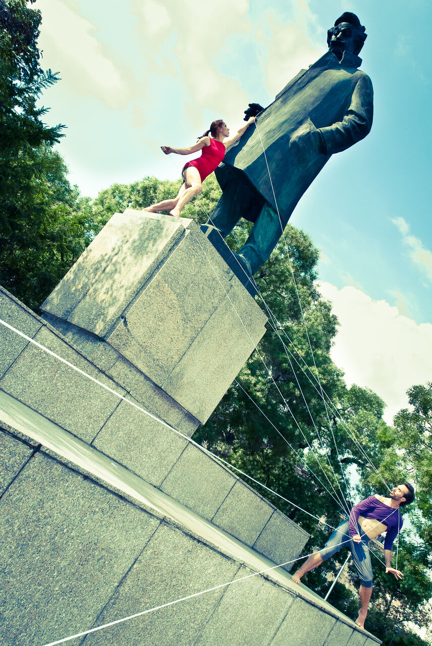 6. String Quartets (2012) – Projekt navazoval na předchozí večer Kreutzer Sonata. Byl složen ze tří smyčcových kvartetů Leoše Janáčka a Miloslava Ištvana. Živě hrálo Graffovo kvarteto. Opět jsme se vraceli malinko ke dramaturgii Pražského komorního baletu a s živou hudbou! Všechny tři díla jsme se ale snažili propojit v jeden celek. Choreografoval jsem kvartety od Janáčka a Isira Makuloluwe kvartet od Ištvana. Nemyslím si, že jsme objevili něco neobjeveného, ale pracovali jsme hodně konceptuálně s již vytvořenými díly a předlohami Tolstého, Zdeny Janáčkové a Jana Nerudy. Na svém tvůrčím vrcholu byly hlavně Irene Bauer a Alena Pajasová. Já si jen matně vzpomínám, že na konci třetího kvartetu (tančil jsem všechny) jsem už nevěděl, která bije. Tahle fotka je od Martina Šandery a je opravdu reálná, žádná koláž ani postprodukce. Opravdu jsme stáli pod Janáčkem a vytvářeli gumou iluzi strun.