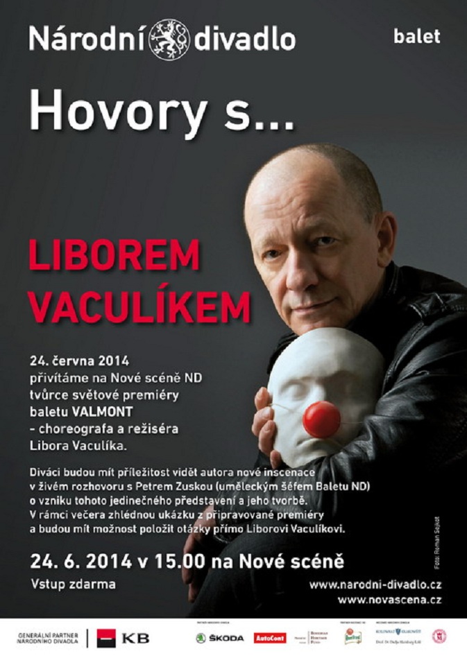 Balet Národního divadla uvede 26. června a 1. července ve Stavovském divadle premiéru původního baletu v choreografii a režii Libora Vaculíka – Valmont. Inscenace vzniká na motivy slavného literárního díla Nebezpečné známosti. Předlohou je román psaný v dopisech: autor Choderlos de Laclos – důstojník francouzské armády neschopen uspokojit své vojenské ambice začal psát.