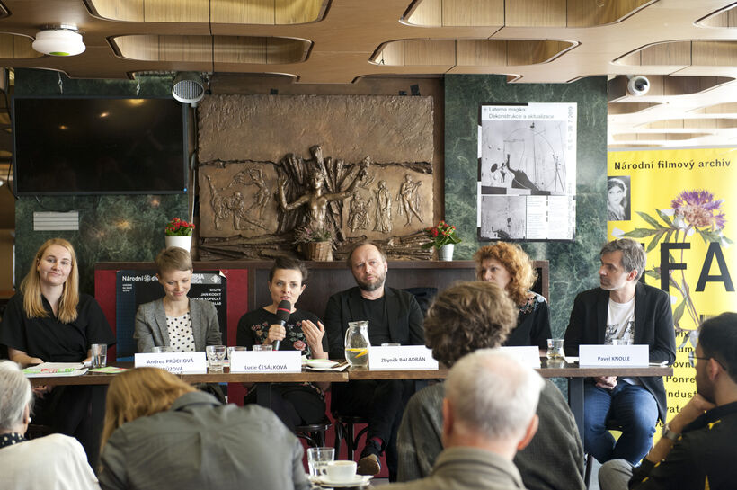 Tisková konferene. Hana Šilarová, Andrea Průchová Hrůzová, Lucie Česálková, Zbyněk Baladrán, Ilona Machová, Pavel Knolle (zleva).