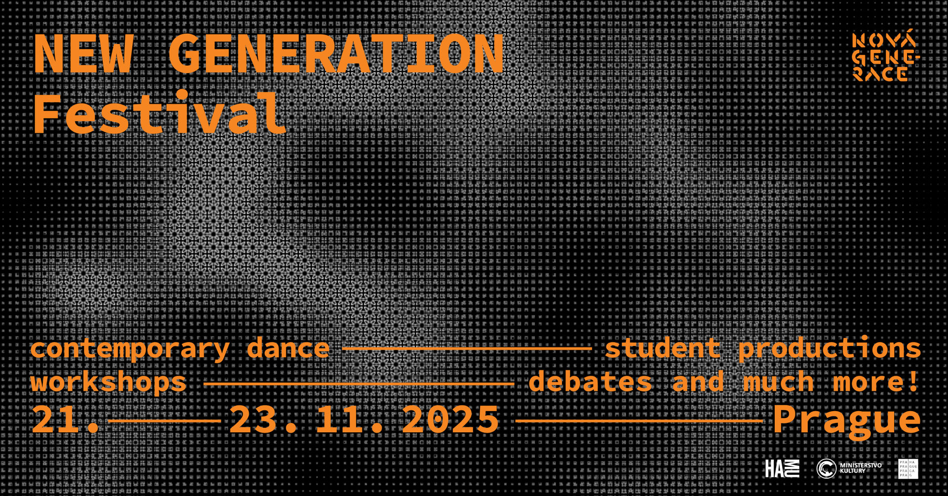 Konec listopadu na Hudební a taneční fakultě AMU patří tanci jako každý rok. Festival Nové generace se letos koná od 21. do 23. listopadu a nabídne třídenní program v prostorách HAMU, divadla DISK i FAMU. Pro diváky budou připravena studentská představení, site-specific performance, projekci tanečních filmů i workshopy vedené zkušenými českými i zahraničními lektory.