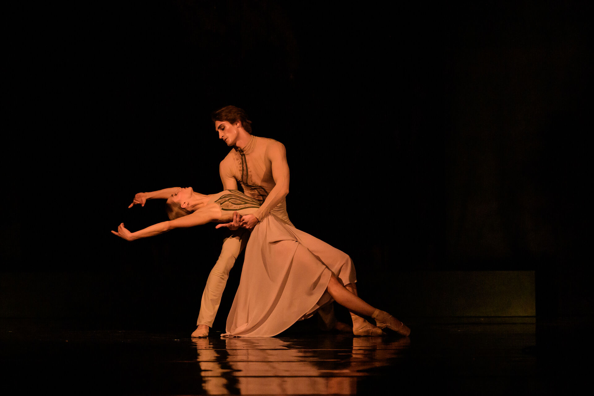 První část večera patří baletu Pták Ohnivák, který byl pro George Williamsona zásadním uměleckým mezníkem. Tento titul se stal jeho prvním dílem vzniklým na zakázku baletního souboru Anglického národního baletu v Londýně a přinesl mu mezinárodní uznání – nominaci na prestižní cenu Benois de la Danse, zatímco představitelka titulní role Ksenia Ovsyanick získala National Dance Award za mimořádný výkon. „Když mi bylo 21 let, byl tento balet mým prvním profesionálním počinem, což má pro mě zvláštní význam. Pták Ohnivák mě zaujal jako symbol surové, elementární síly přírody. Od začátku bylo mým cílem vytvořit pohyby, které tanečníky posouvají na hranici jejich technických i fyzických možností. Pták Ohnivák není jen postava – je to ztělesnění síly, odolnosti a divoké krásy,“ vysvětluje choreograf. V olomouckém nastudování se titulní role znovu ujme právě Ksenia Ovsyanick, která s choreografem spolupracuje už řadu let a byla první interpretkou Ptáka Ohniváka při premiéře v Londýně.