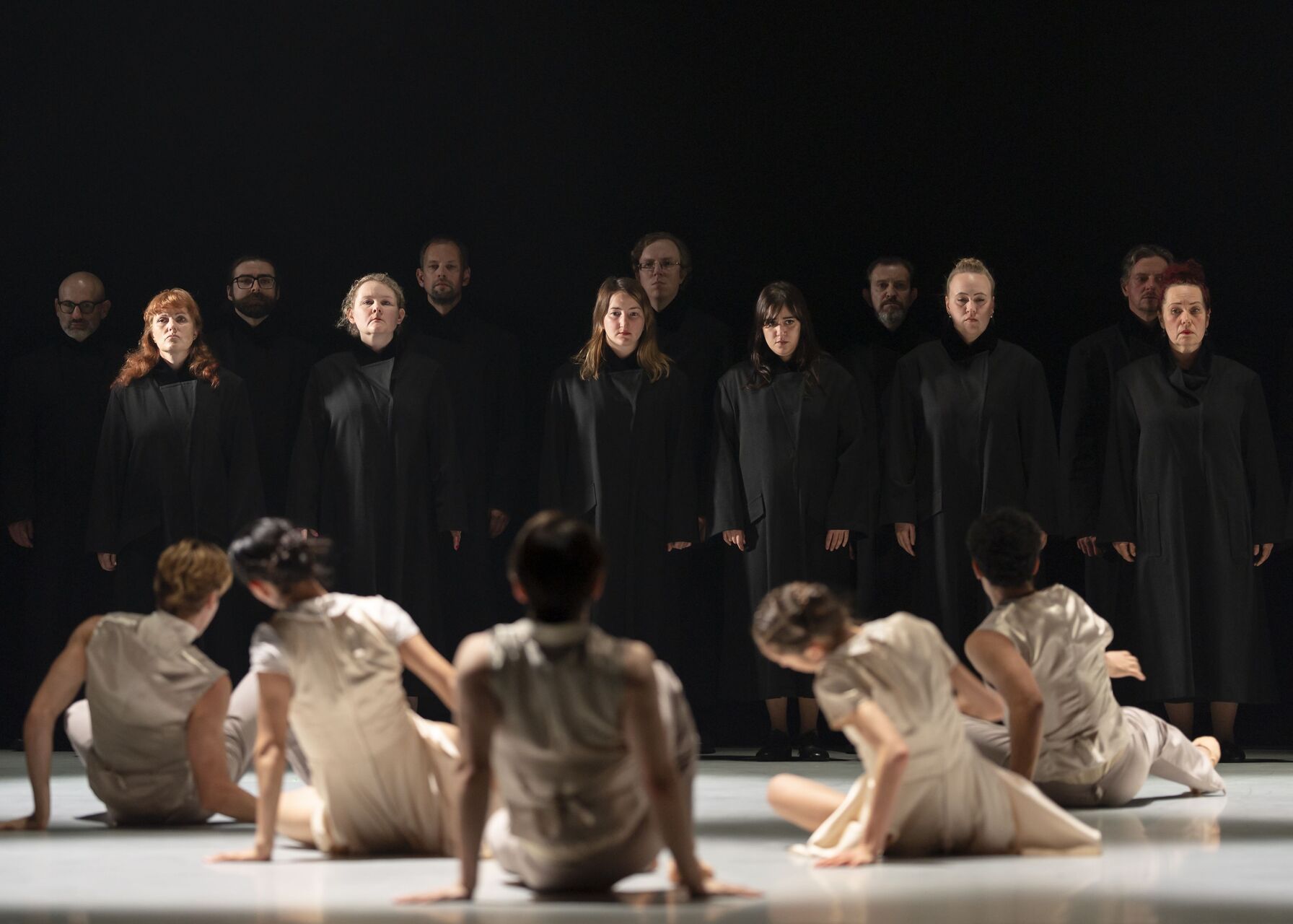 Zuska v tomto díle propojuje na jednom jevišti tanečníky, herce a operní sbor se sólisty; vše podkresluje živý orchestr s minimalistickou hudbou Arva Pärta – například spirituální The Most Holy Mother of God či Spiegel im Spiegel; nechybí ani ikonické Fratres. Propojením tance, zpěvu a dialogu dvou herců vzniká – jak sám Zuska uvádí – „totální divadlo“.